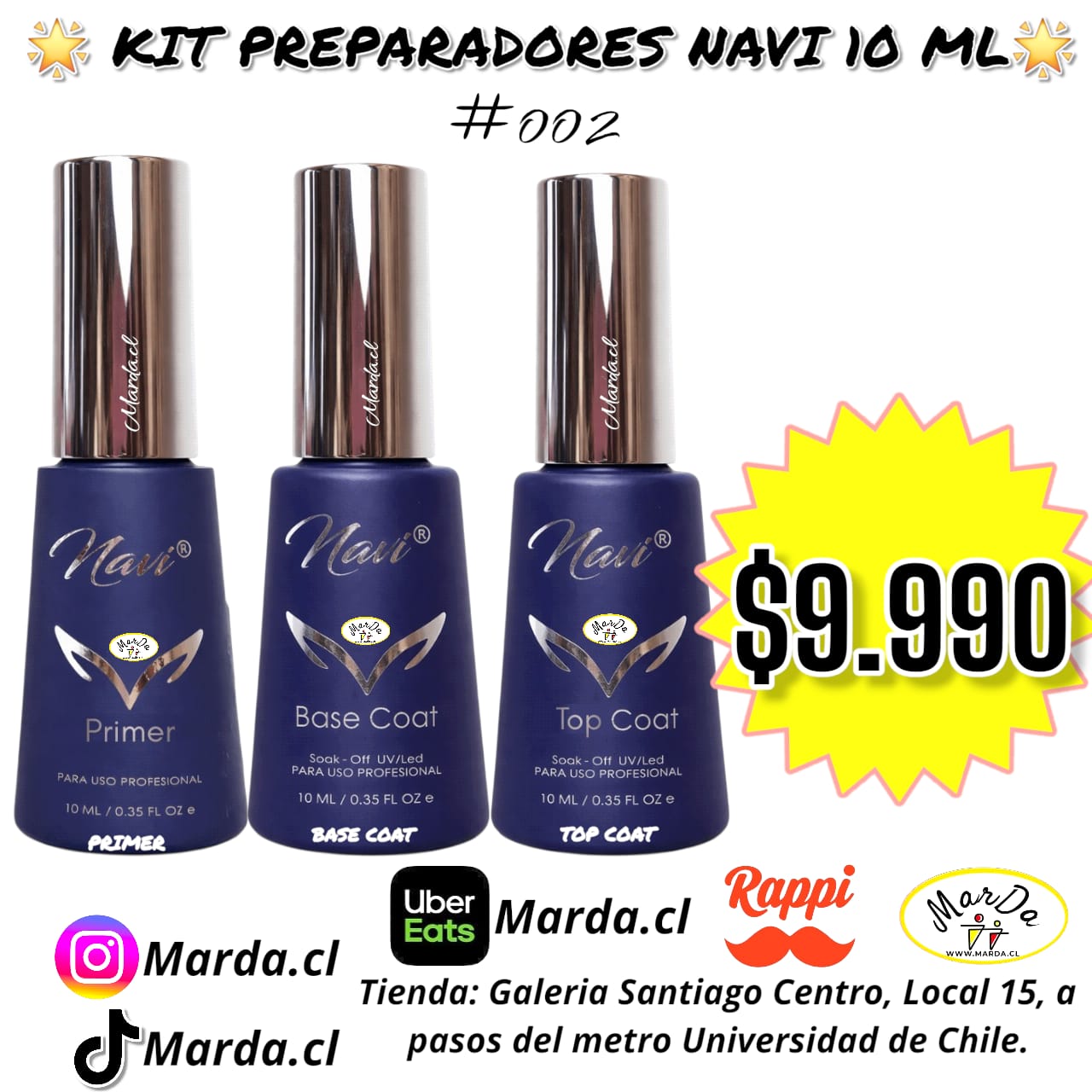KIT PREPARADORES : PRIMER + BASE COAT + TOP COAT NAVI 10 ML