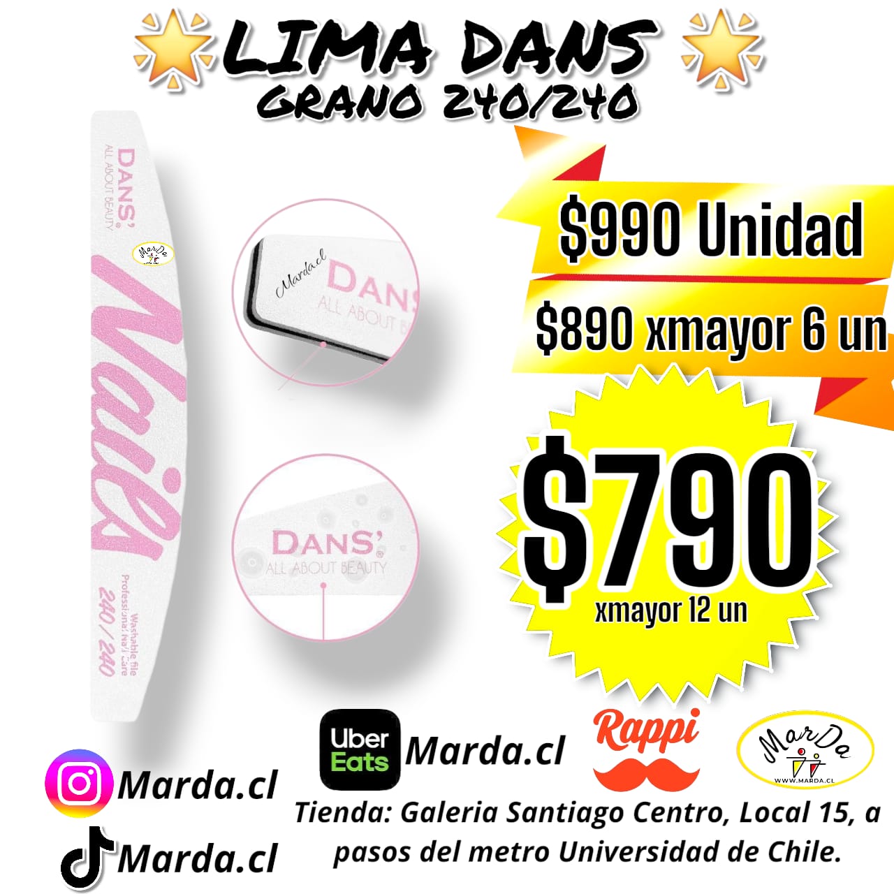 Lima Dans de grano #240/240, Grano Extra Fino, perfecto para uñas naturales, permite acabado final y pulir. También sirve para uñas débiles.